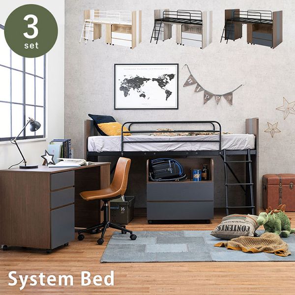 ベッド システムベッド RB-1620S [代引不可] 全3色 システムベッド ロフトベッド ベッド デスク ワゴン キッズ 子供 ロフト レイアウト デザイン 子供部屋 学習机 秘密基地 収納 子供用 送料無料