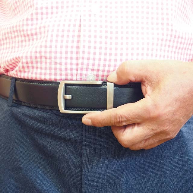 食後などお腹が苦しい時、片手でスッとサイズ調整できるベルトです。