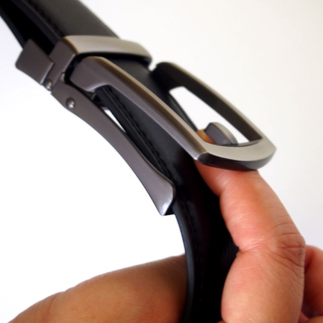 ベルト穴がないのにお好みの位置で留まるラチェット式ベルト。