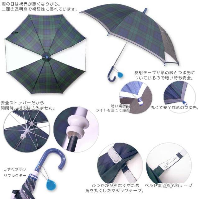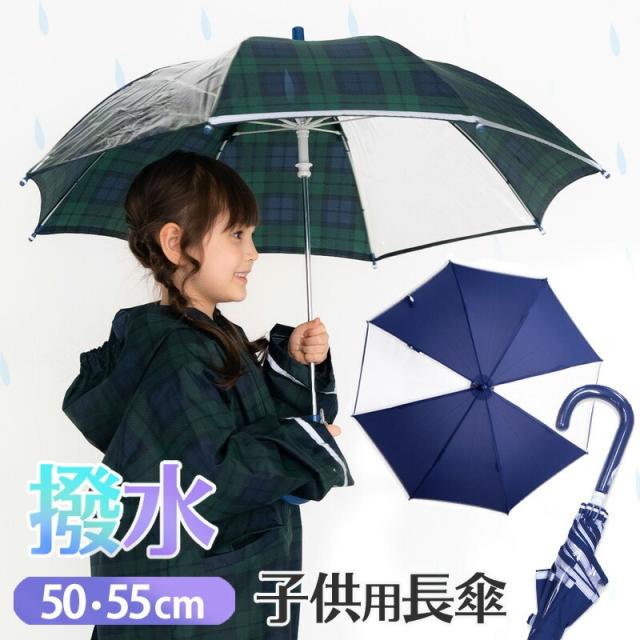 傘 かさ カサ 透明窓ありキッズ 50cm 55cm (50センチ 55センチ) 手開きタイプ 雨傘 アンブレラ 長傘 紺 コン無地 チェック 男の子 女の子 子供用 子供 こども 子ども 小学生 低学年 高学年 幼児 通学 通園 お受験 雨具 雨 入学 入園 保育園 安全 軽い
