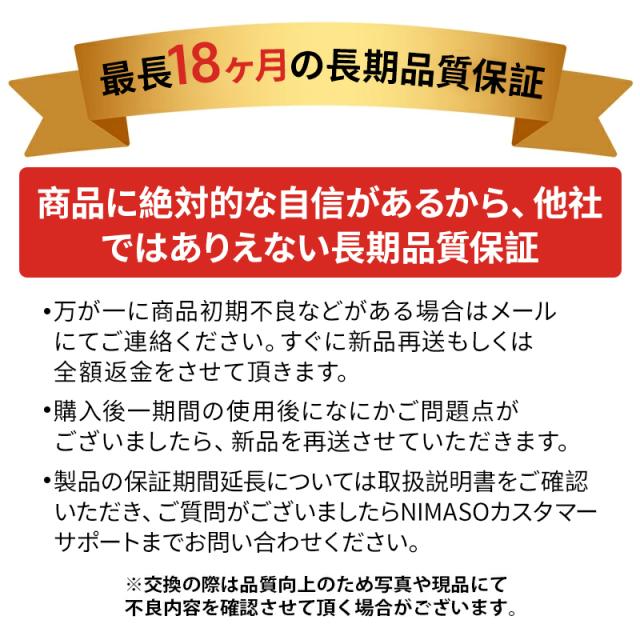 ご安心いただけるよう、ご購入された製品に最長18ヶ月品質サポートがつきます。ご質問やお困り点等ございましたら、ぜひカスタマーサポートにお問い合わせ下さい。