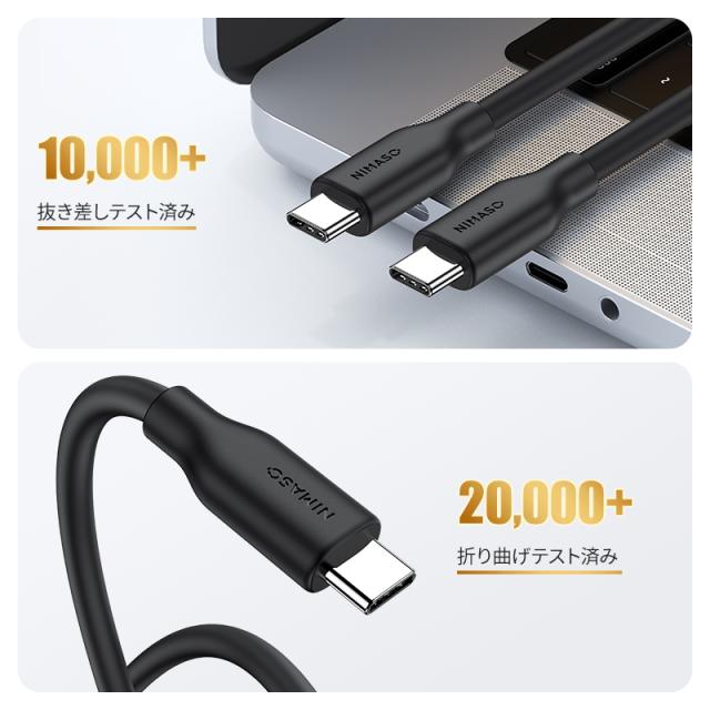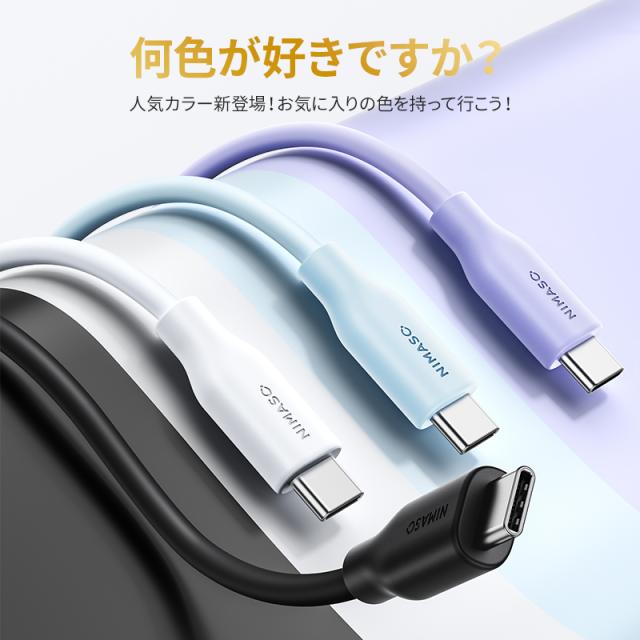 【100w高出力★最長18ヶ月保証 】Nimaso USB C ot Cケーブル Type-Cケーブル 100w高出力 PD急速充電 シリコン素材採用 iPad MacBook Galaxy各種対応 0.5m/1m/2m/3m 送料無料