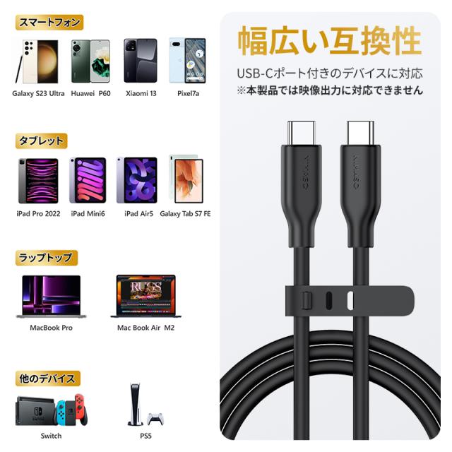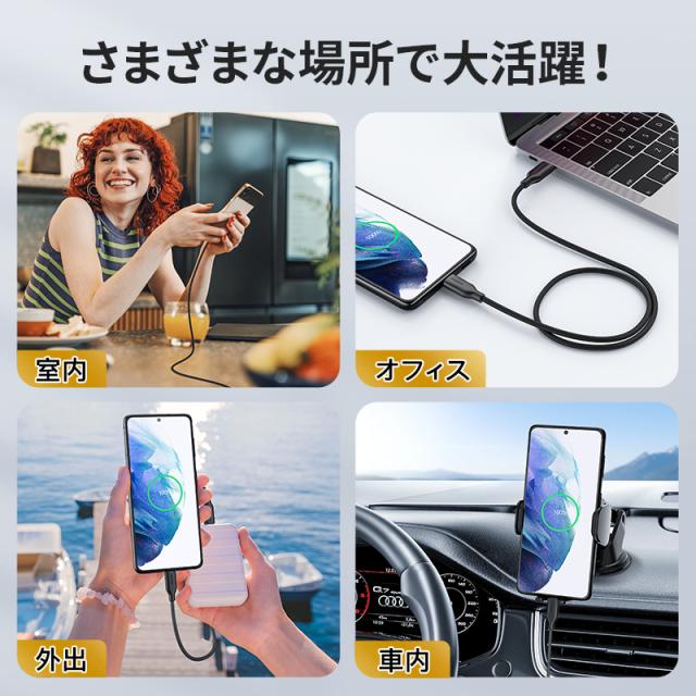 USB-Cに対応したスマホ、タブレット、ノートPC、ゲーム機及びその他のUSB-Cデジタル端末に充電とデーター伝送を対応します。