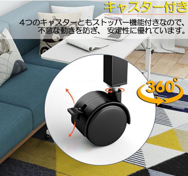 サイドテーブル スタンディングデスク オフィスデスク ベッド用テーブル パソコンデスク 昇降テーブル 天板 高さ調整 キャスター付き 安定性抜群 机 在宅勤務 ワークデスク PCデスク 簡易テーブル 小型テーブル 勉強机 日本語説明書付き