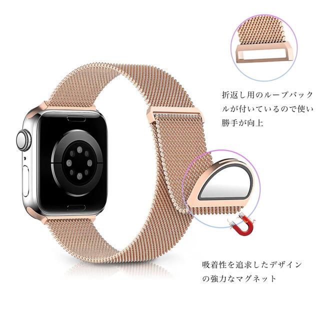 アップルウォッチ バンド Apple Watch ベルト ステンレス ミラネーゼ ループ メッシュ 高級感 おしゃれ 38mm 40mm 41mm 42mm 44mm 45mm メンズ レディース AppleWatch アップルウォッチバンド SE 8 7 6 5 4 3 2