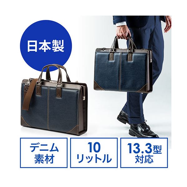 商品仕様: サンワダイレクト ダレスバッグビジネスバッグ (日本製・2WAY・デニム使用・13.3型対応・鍵付・ネイビー) 200-BAG145NV1個