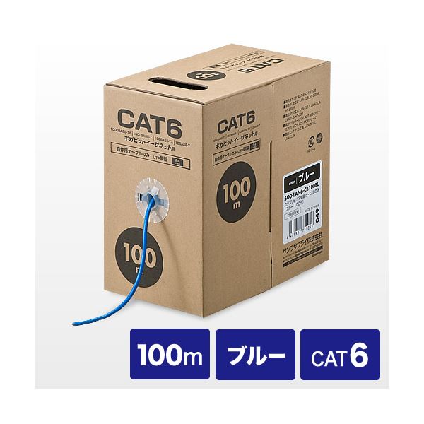 商品仕様: サンワダイレクト LANケーブル(自作用・100m・カテゴリ6・単線・UTP・ブルー 青) 500-LAN6-CB100BL 1本