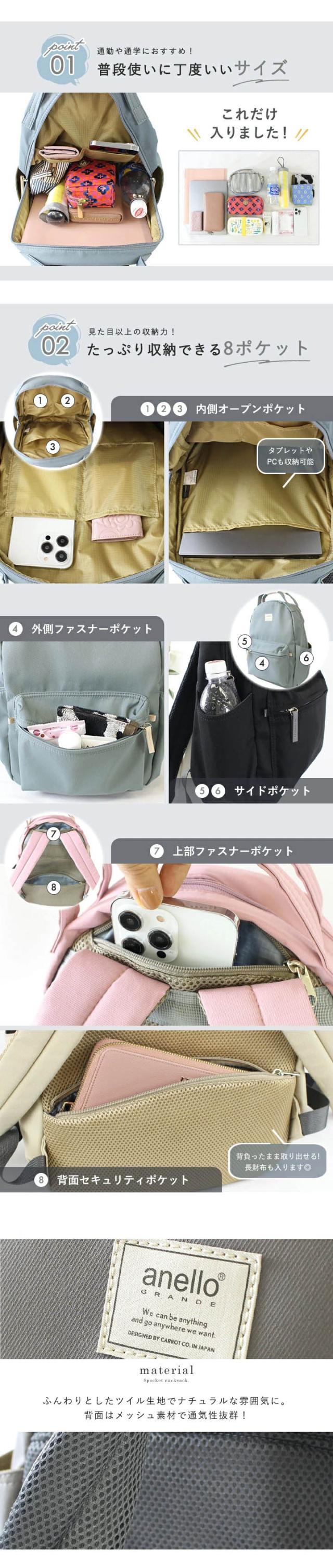 リュック アネロ anello リュックサック 大容量 レディース メンズ バックパック デイパック 軽量 ハンドル付き 通勤 通学 旅行 シンプル 背面メッシュ生地 ノートパソコン ポケット ボトルポケット 多収納 お出掛け 男女兼用 ユニセックス【m0551】