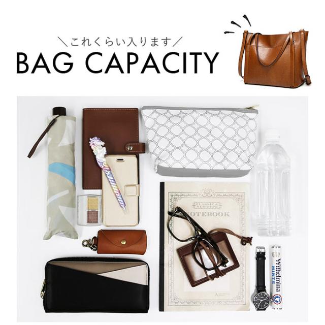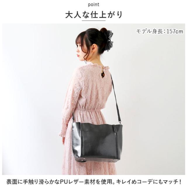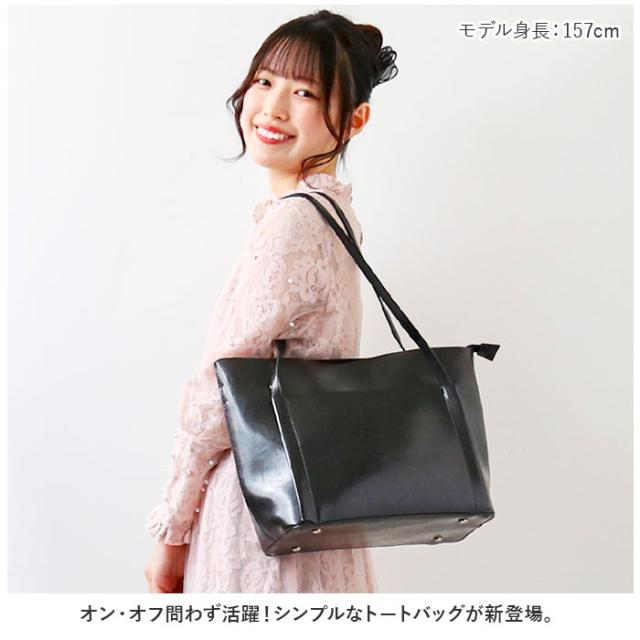 | 商品説明 | ・オン・オフ問わず活躍!シンプルなトートバッグが新登場。 【大人な仕上がり】 ・表面に手触り滑らかなPUレザー素材を使用。キレイめコーデにもマッチ! 【持ち方を選べる2WAYタイプ】 ・トートバッグとしてはもちろん、長さ調節可能なショルダーベルトを取り付けて、斜め掛けもOK。 【天ファスナー開口】 ・開口部は天ファスナー式。中身がこぼれ落ちにくく、プライバシーを確保。 【A4サイズ対応】 ・内側はA4サイズのファイルがぴったり収まるサイズ感。500mlペットボトルや、お出かけに必要な小物類もひとまとめ◎ 【便利な間仕切りや内ポケット付き】 4つの内ポケット&あおりポケット付きで、小物が迷子になりにくい!中央のファスナーポケットが仕切りの役割を果たし、すっきり整理整頓♪ 【サッと取り出せる外ポケット】 ・外側両面にオープンポケットを配置。ショルダーとして使う時は、ハンドルを収納することも可能。 【底マチ設計】 ・マチがあるのでしっかり自立!底面四隅に底鋲付きで、傷や汚れが付きにくいのも嬉しいポイント。 【ポケット仕様】 ・内側:ファスナーポケット×2、オープンポケット×2、あおりポケット×1 ・外側:オープンポケット×2 |