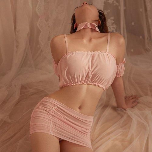 メッシュから透けて見えるバストやヒップは、触れたい感情をどこまで抑えられるかパートナーを誘惑しちゃいます。