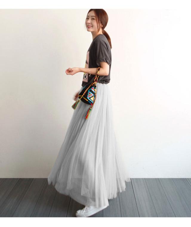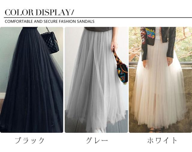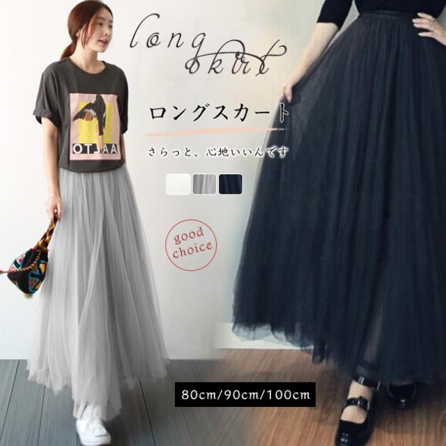 チュールスカート ロングスカート 選べる3色 レディース ウエストゴム シンプル無地 裏地付き フレアスカート マキシ丈 ボトムスagesugi_sfa