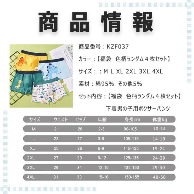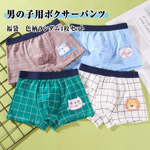 【福袋 】【 色柄ランダム4枚セット】 男の子 下着 キッズ ボクサーパンツ ボクサーショーツ 前閉じ 男の子 ショーツ ボクサー インナーパンツ 子供服 春 夏 秋 M L XL 2XL 3XL 4XL 綿95% コットン 通気性 排汗 伸縮性 柔軟性 優しい穿き心地