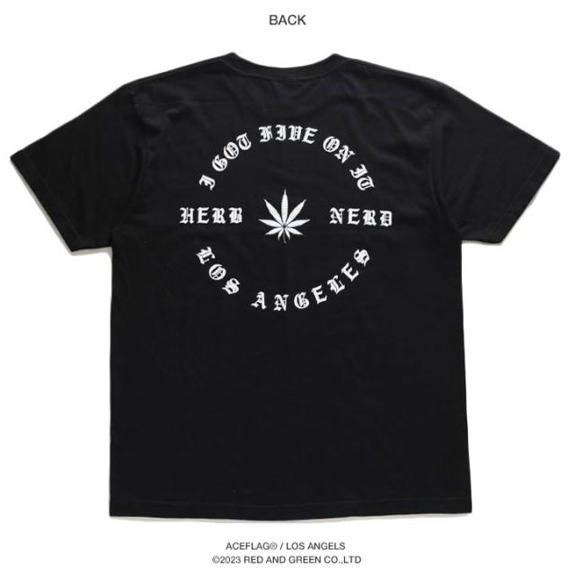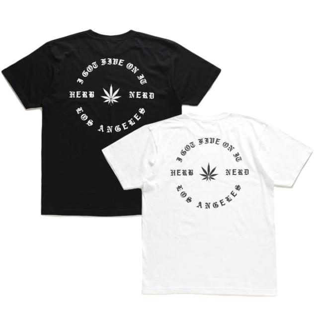 仲間内でお金を出し合いKUSHをゲトる際に使われる「I Got 5 on It」と「HERB NERD/ハーブオタク」からなるサークルロゴ。