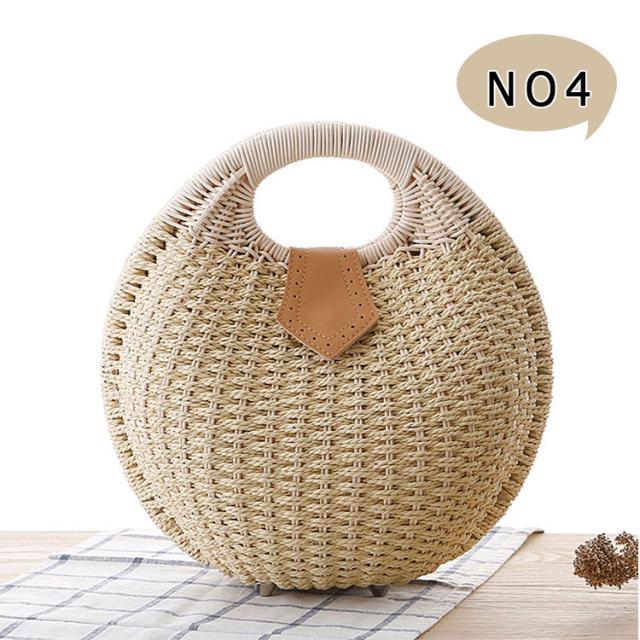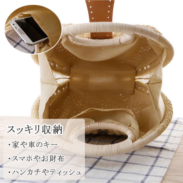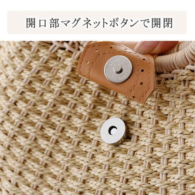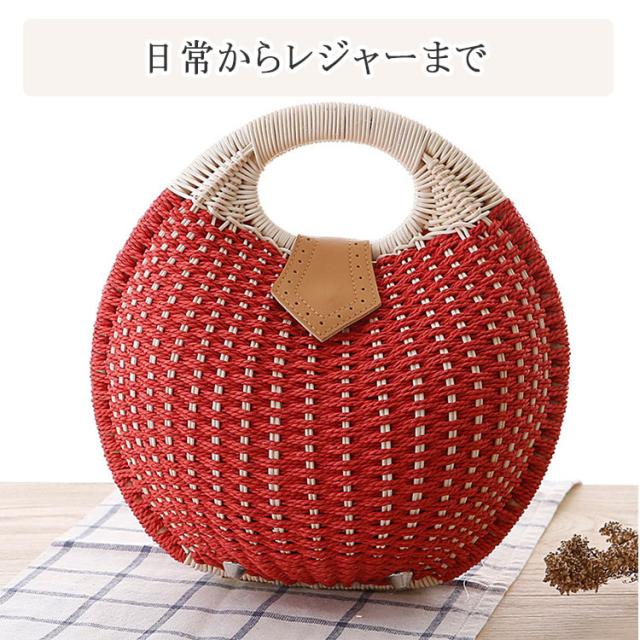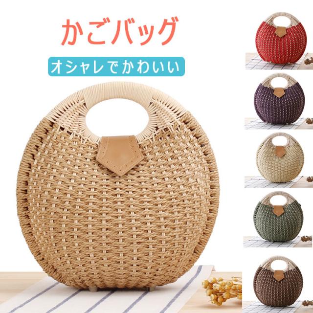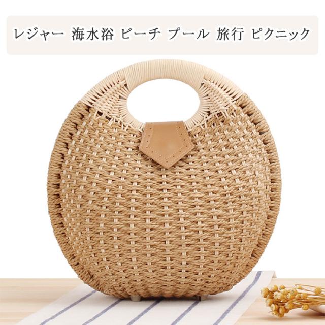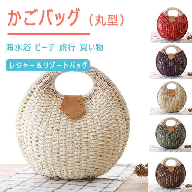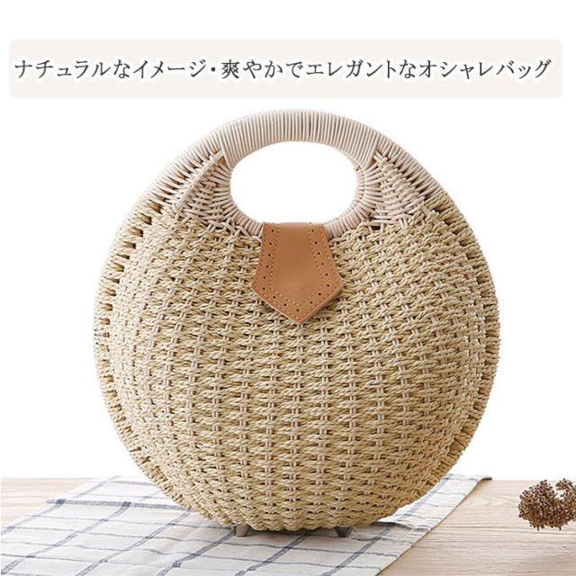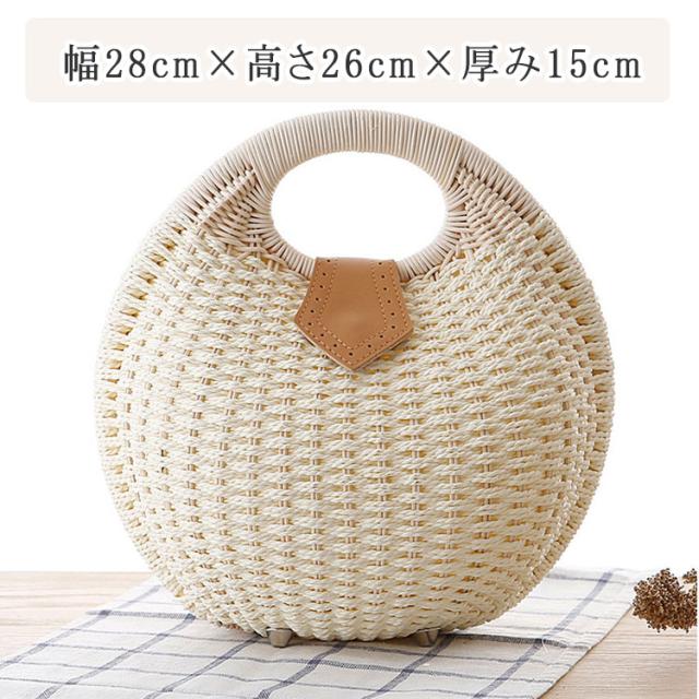 かごバッグ 丸型 編み ハンドバッグ サークルバッグ ふっくら丸い かわいいかごバッグ サークル 円形トート 編みバッグ 開口部ファスナー開閉 レディース バッグ 小さめサイズ 幅28cm×高さ26cm×厚み15cm トート ナチュラル シンプル かわいい