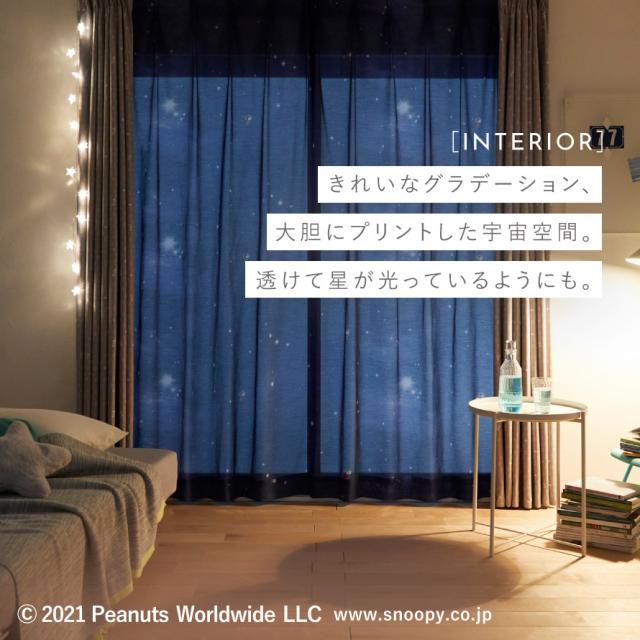 お部屋の主役インテリアに。癒される空間を演出できる、魅力たっぷりのカーテンです。同じPEANUTSシリーズのドレープカーテンと合わせても。