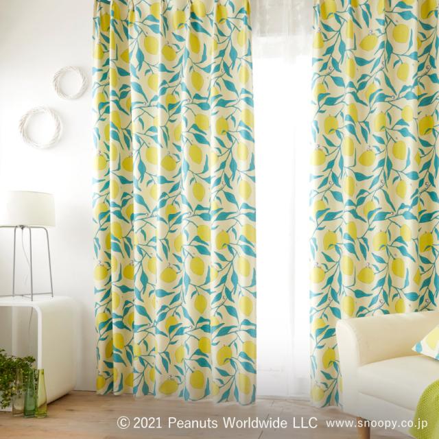 レモン畑を探検するスヌーピーたちが可愛いドレープカーテン。レモンのイエローが爽やかで、ナチュラルなインテリアにもよく合います。
