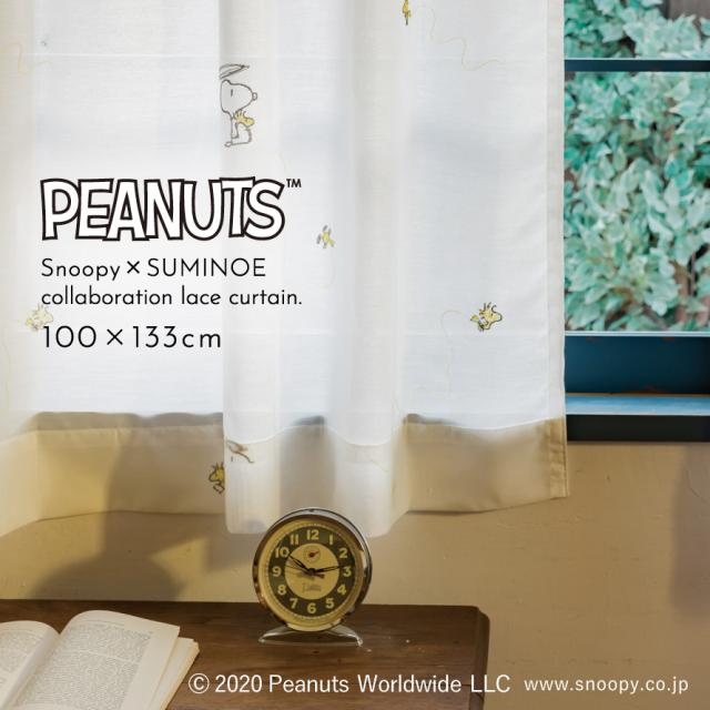 スヌーピー レースカーテン 100×133cm カーテン レース PEANUTS ピーナッツ Snoopy インテリア 北欧 ヘリコプターボイル 1枚 洗える おしゃれ スミノエ SUMINOE メーカー直送