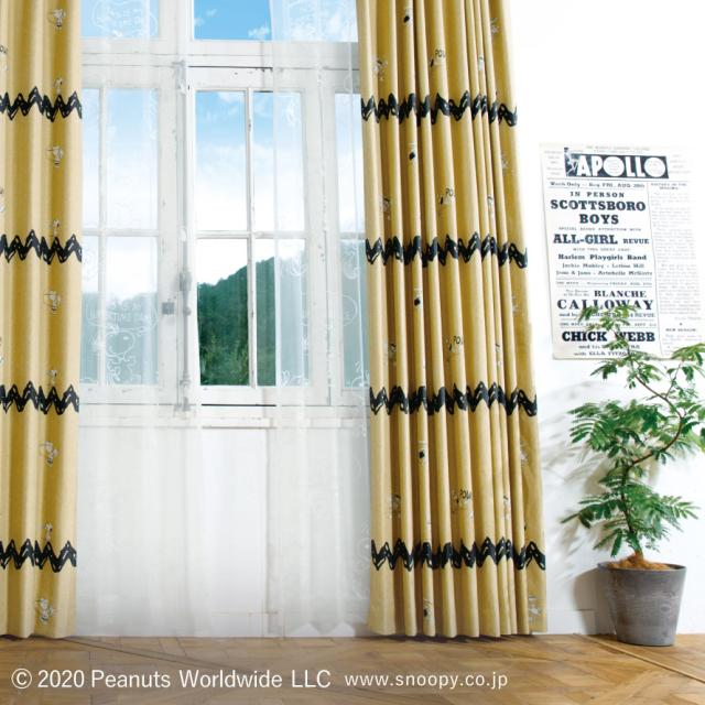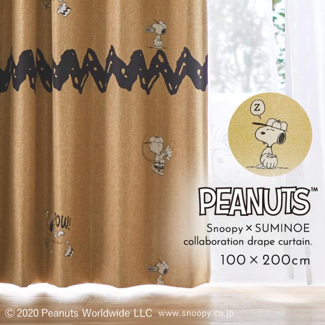 スヌーピー カーテン 遮光 1級 100×200cm 遮光カーテン PEANUTS ピーナッツ Snoopy インテリア 北欧 チャック&ベースボール ドレープ 1枚 日本製 洗える おしゃれ 形状記憶加工 スミノエ SUMINOE メーカー直送