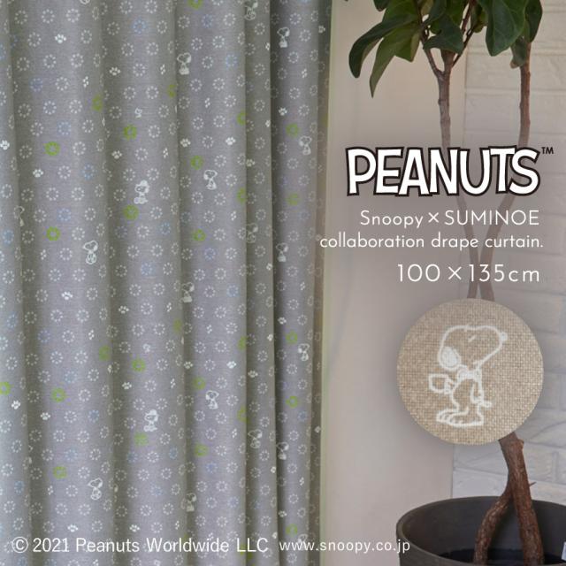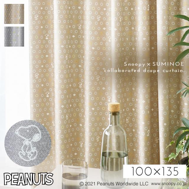 スヌーピー カーテン 遮光 100×135cm 遮光カーテン PEANUTS ピーナッツ Snoopy インテリア 北欧 ボウタイ ドレープ 1枚 日本製 洗える おしゃれ 形状記憶加工 スミノエ SUMINOE メーカー直送