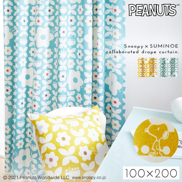 スヌーピー カーテン 遮光 100×200cm 遮光カーテン PEANUTS ピーナッツ Snoopy インテリア 北欧 フラワーメイズ ドレープ 1枚 日本製 洗える おしゃれ 形状記憶加工 スミノエ SUMINOE メーカー直送