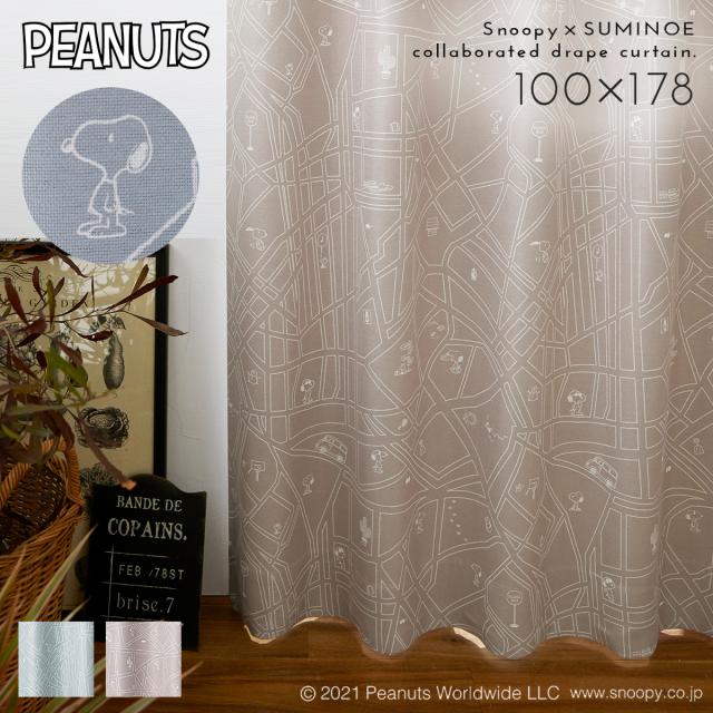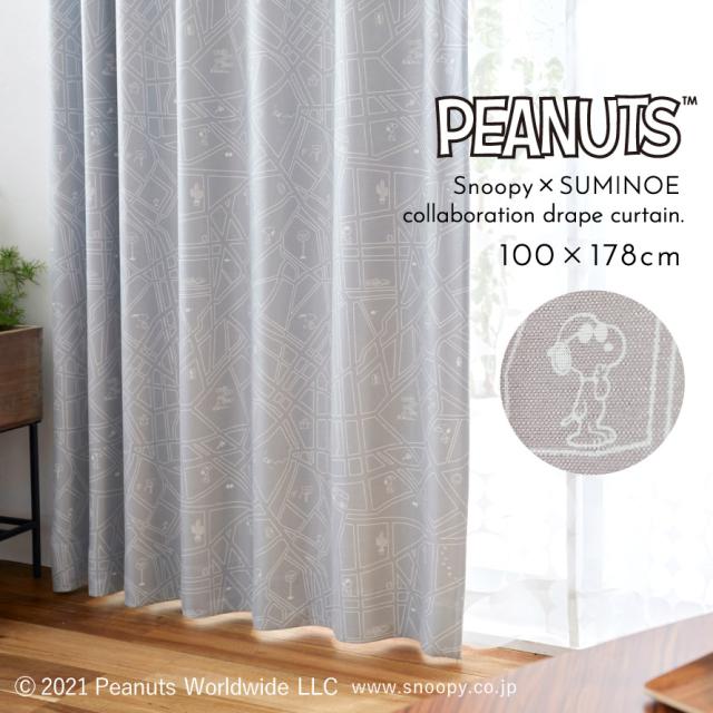 スヌーピー カーテン 遮光 100×178cm 遮光カーテン PEANUTS ピーナッツ Snoopy インテリア 北欧 シティースケープ ドレープ 1枚 日本製 洗える おしゃれ 形状記憶加工 スミノエ SUMINOE メーカー直送