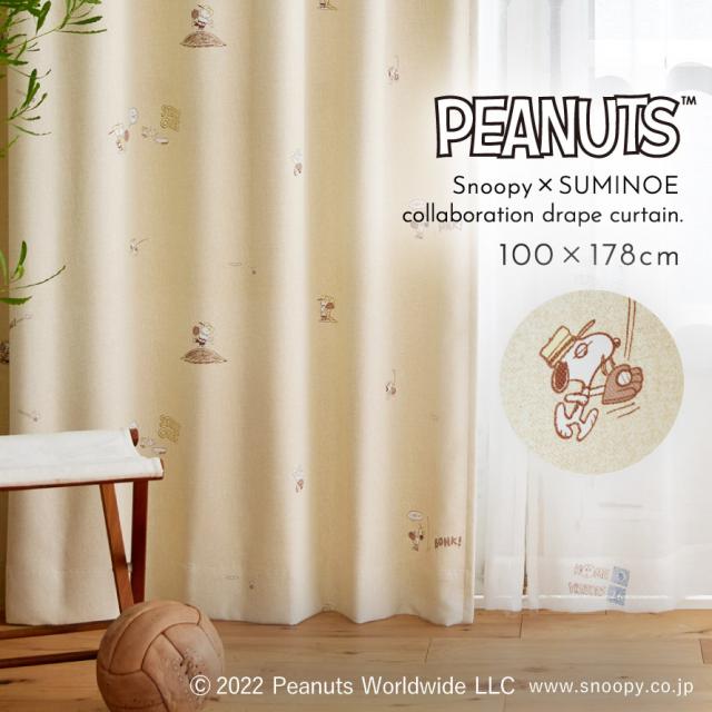 スヌーピー カーテン 遮光 100×178cm 遮光カーテン PEANUTS ピーナッツ Snoopy インテリア 北欧 ブルー ベージュ ベストフォーメーション ドレープ 1枚 日本製 洗える おしゃれ 形状記憶加工 スミノエ SUMINOE メーカー直送