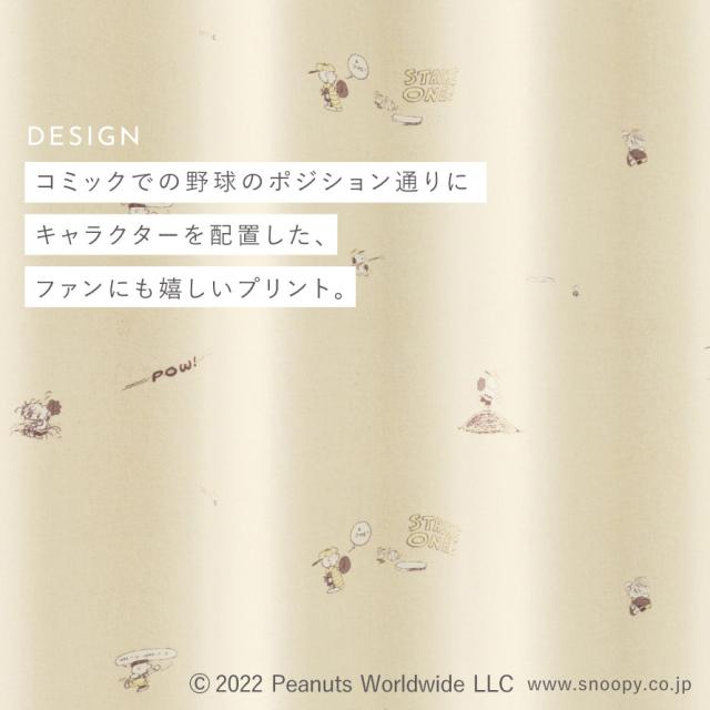 PEANUTSコミックの、野球シーンのポジション通りにキャラクターが配置された、ファンにはたまらない遊び心のあるデザイン。