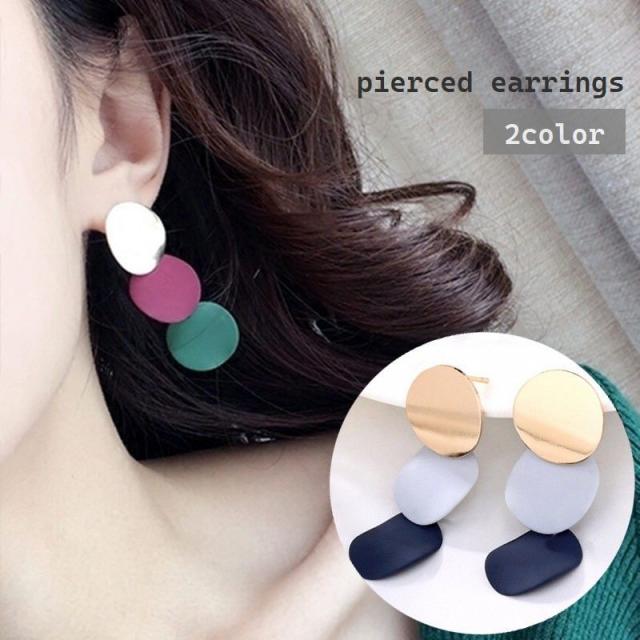 スタッドピアス レディース アクセサリー サークル ラウンド 楕円形 丸型 3連 三連 ロング おしゃれ 大人かわいい カジュア