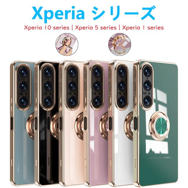 Xperia 10VII 1VII 10VI 5V 10V 1V 10IV 1IV 5IV 1III AceIII ケース メッキ加工 リング付き ストラップホール付き 回転可能 一体型 保護ケース 落下防止 軽量 スタンド スマホリング 360度回転 指掛け TPUスマホカバー