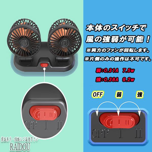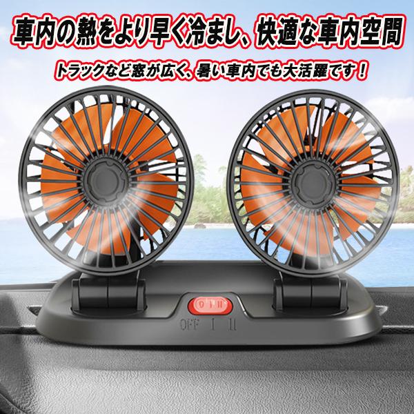 車用 扇風機 カーファン 車載扇風機 ダブルファン 角度調整可能 2段階風量調整 5枚羽根 シガーソケット 車用扇風機 小型扇風機 車内 サーキュレーター ファン 強力 涼しい 静音 ひんやり 暑さ対策 車中泊 カー用品