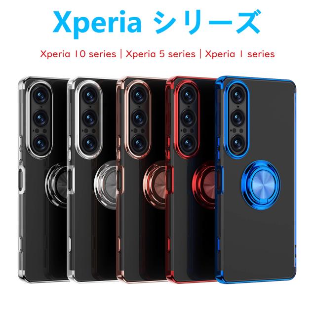 Xperia 10VII 1VII 5V 10VI 1V 10IV 1IV 5IV AceIIIケース メッキ加工 リング付き 回転可能 一体型 エクスペリアマーク 保護ケース 軽量 スタンド機能 TPUスマホカバー スマホリング 落下防止 防滑 360度回転 指掛け 透明スマホケース