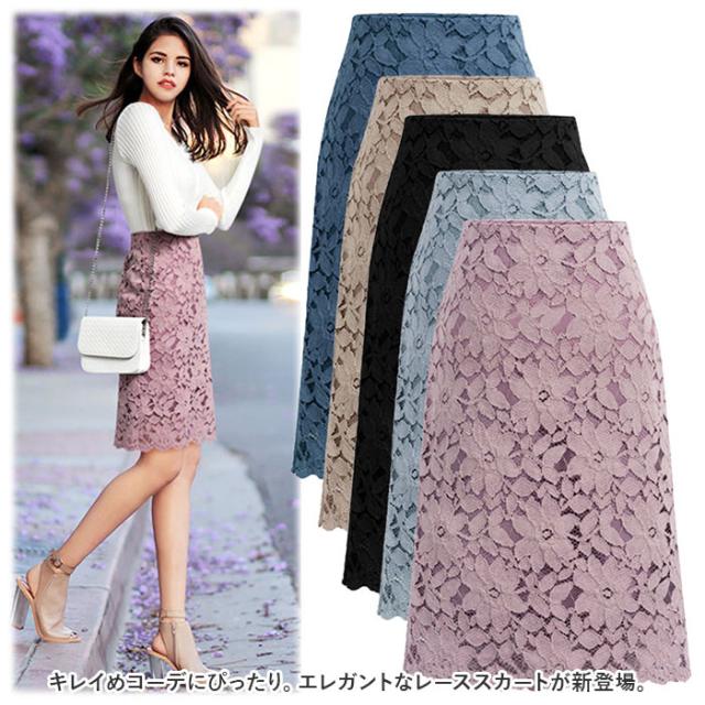 レーススカート 通販 スカート レース Aラインスカート 膝丈スカート ひざ丈スカート