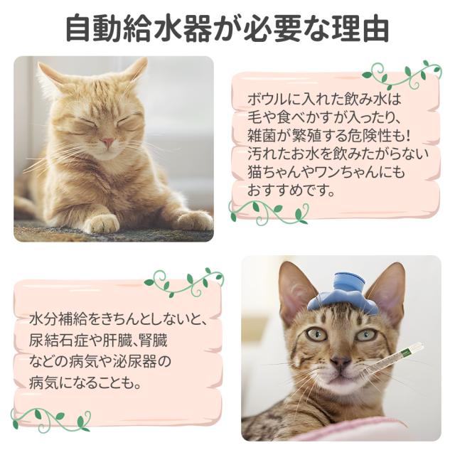 自動給水器 浄水機能 活性炭フィルター付き 2.5L 水飲み器 自動水やり器 自動水やり機 水飲み器 循環式 静音 自動給水機
