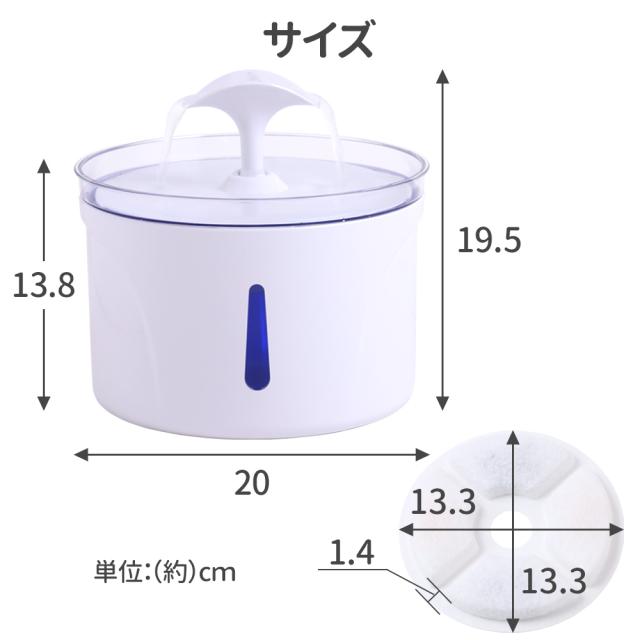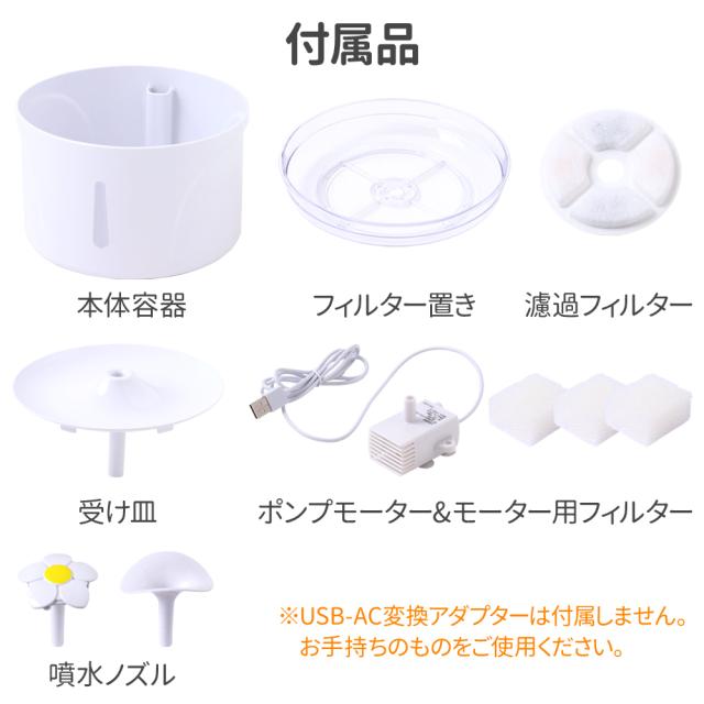 付属品:本体容器、濾過フィルター置き、受け皿、ポンプモーター、濾過フィルター ×各1個