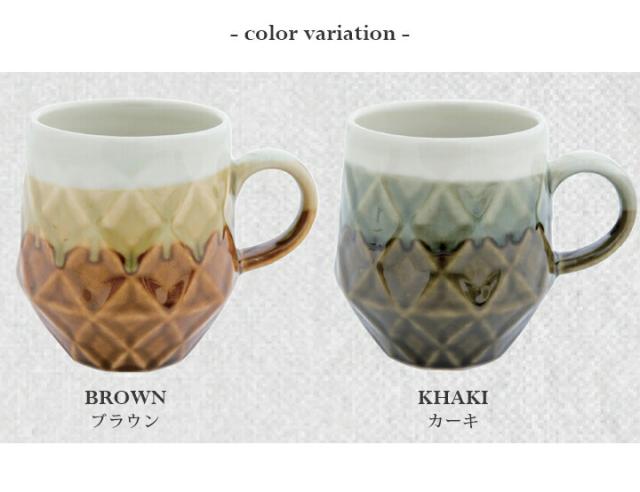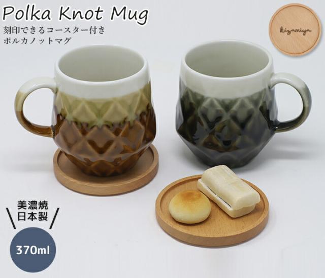マグ ポルカノット Polka Knot 370ml 名入れ 刻印 刻印できるコースター 美濃焼 ブラウン コースターセット 食洗機対応 電子レンジ対応 格子柄 レンジ対応 父の日 CDF etendue CDFエタンデュ ビスク BISQUE