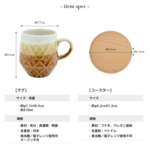 | サイズ | ・【マグ】約φ7.7×H9.3cm、約370ml |