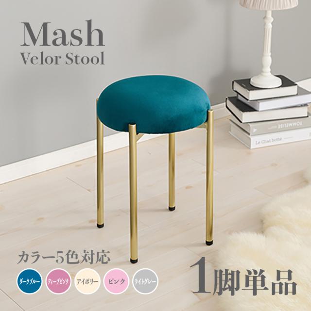 Mash スツール【1脚単品】小椅子 ダークブルー ディープピンク アイボリー ライトグレー ピンク スタッキング可能 ベロア 姫系 スタイル ドレッサースツール チェアー 店舗用 コントラクトにもオススメ
