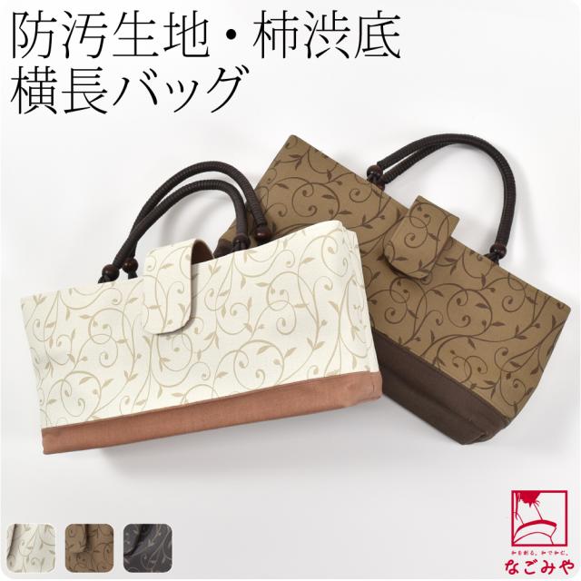 | 備考 | : | なごみやオリジナルこだわりの和装バッグ「ローレンス」横長バッグです。 つゆ唐草文様が、フェミンで合わせやすい上品な柄行き。 こだわりのポイントは、バックの表地に汚れが付きにくい防汚生地採用。 防水・防虫性に優れた柿渋染めの生地を底に使用しています。 ロウ引き持ち手は汚れが付きにくく、丸い形状が持ちやすいです。 さらっとした手触りで持ちやすいバッグです。 横長のデザインが使いやすく、着物姿にマッチしますね。 真ん中にファスナー式の仕切りがあり、大切な小物の収納が可能。 内側には、ミニポケットがあり、定期、キーケース、スマートフォンなどの小物が入ります。 入り口の被せはマグネットで使いやすいです。 長財布もらくらく入ります。 折り畳み傘や、水筒なども横にしっかり入る大きさなので便利です。 お出かけや、観劇、お稽古、ランチ、女子会などのお出かけに。 あっさりとした柄行きの付け下げや色無地。小紋、紬に合わせていただけます。 洋装にもお使いいただけます。 ■同柄の草履とのセットはこちらから購入できます。 ■同柄の草履はこちらから購入できます。 ※柄の出方はお任せとなります。 ※水濡れ等、使用状況により、色落ちする場合があります。その場合は陰干しをし充分乾燥させた上でご使用ください。 | ||||||||