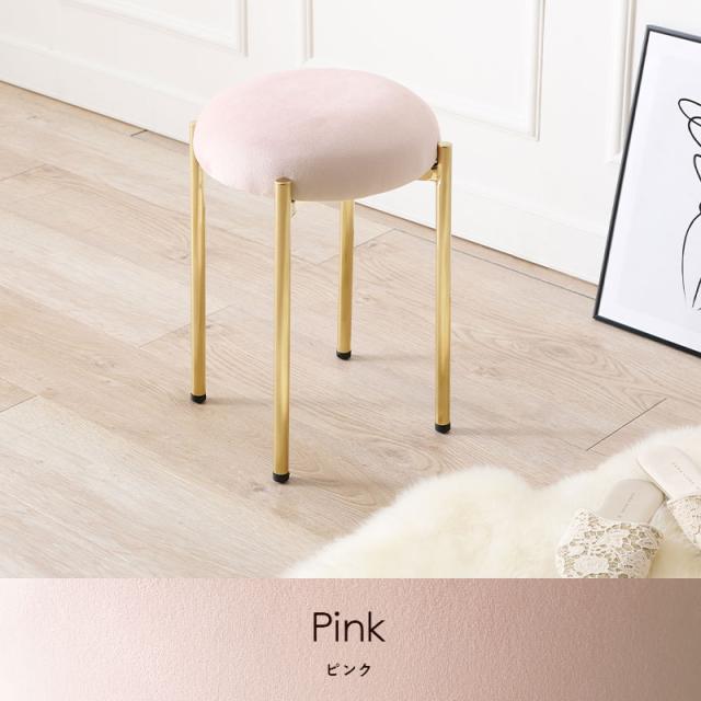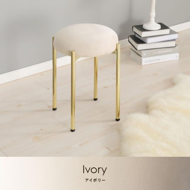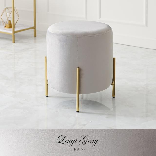 ころんとした座面にゴールドの脚がフェミニンなスツール。