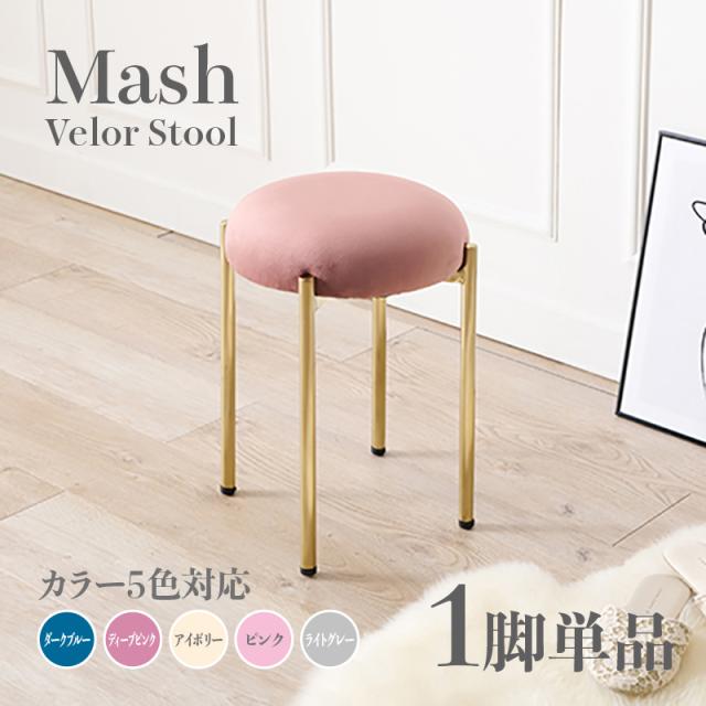 Mash スツール【1脚単品】小椅子 ディープピンク アイボリー ライトグレー ピンク ダークブルー スタッキング可能 ベロア 姫系 スタイル ドレッサースツール チェアー 店舗用 コントラクトにもオススメ