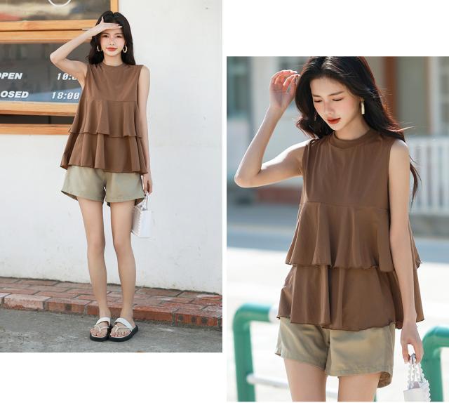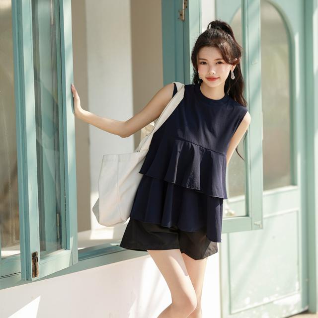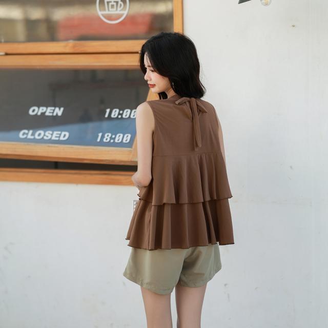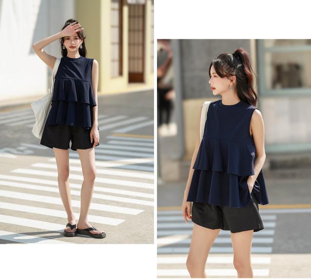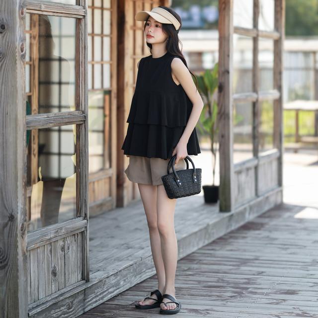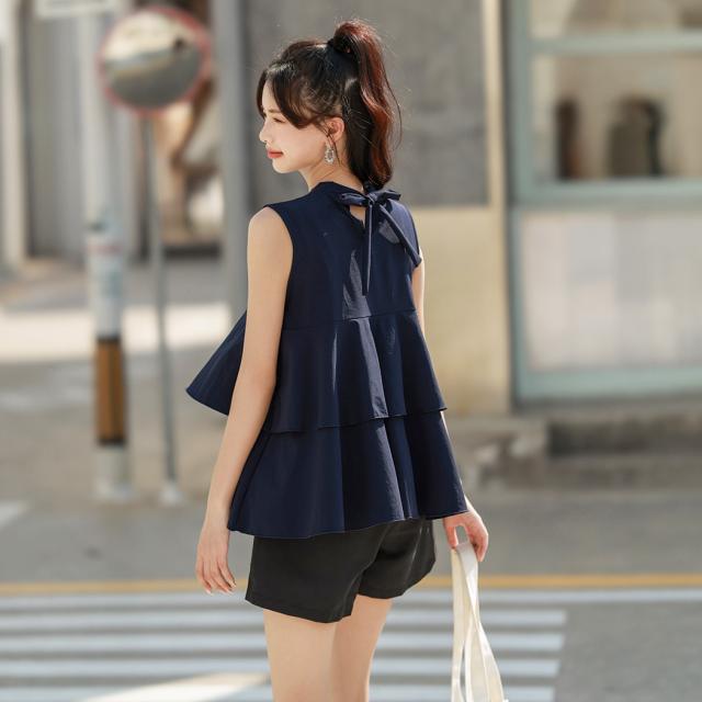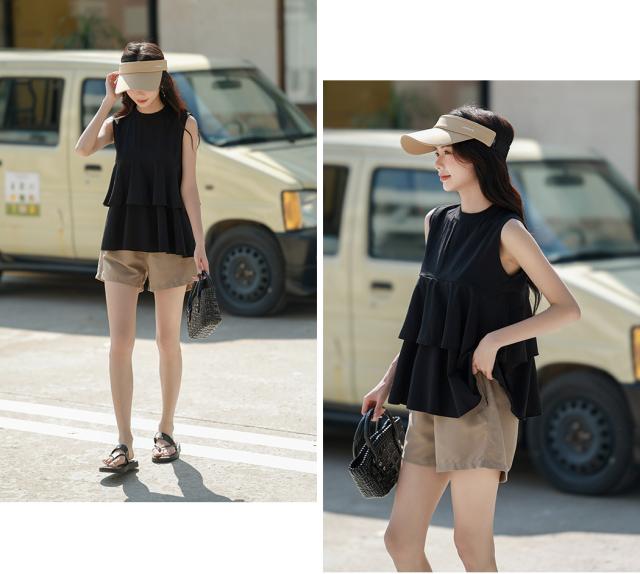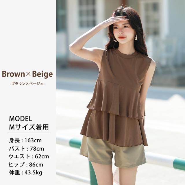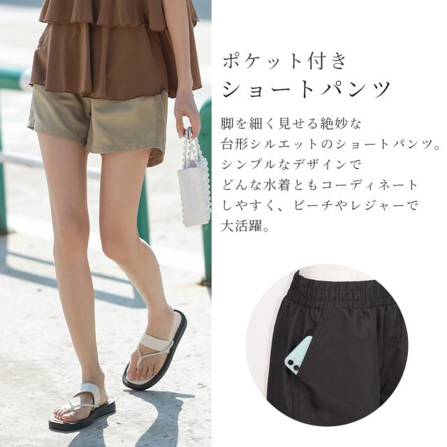 春新作 ラッシュガード レディース ノースリーブ ショートパンツ セットアップ UVカット率 99%以上 UPF50+ 水陸両用 水着 体型カバー おしゃれ かわいい フードなし 薄手 プルオーバー ティアードフリル バックリボン 黒 白 ウエスト ヒップ 太もも カバーアップ