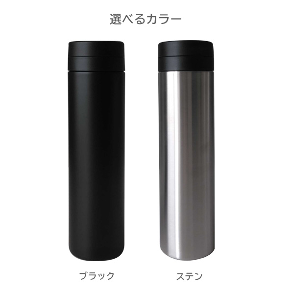 スリムな形状で持ち運びに便利なステンレス製のマグボトル。