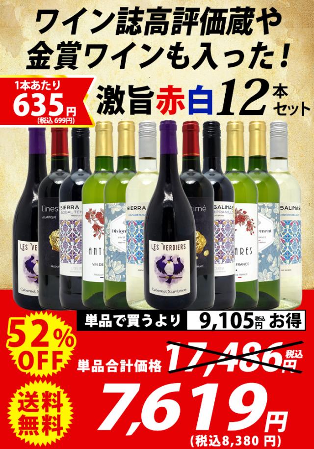 ワイン ワインセット ワイン誌高評価蔵や金賞蔵ワインも入った激旨赤白12本セット 送料無料 (6種類各2本) ^W0SA21SE^