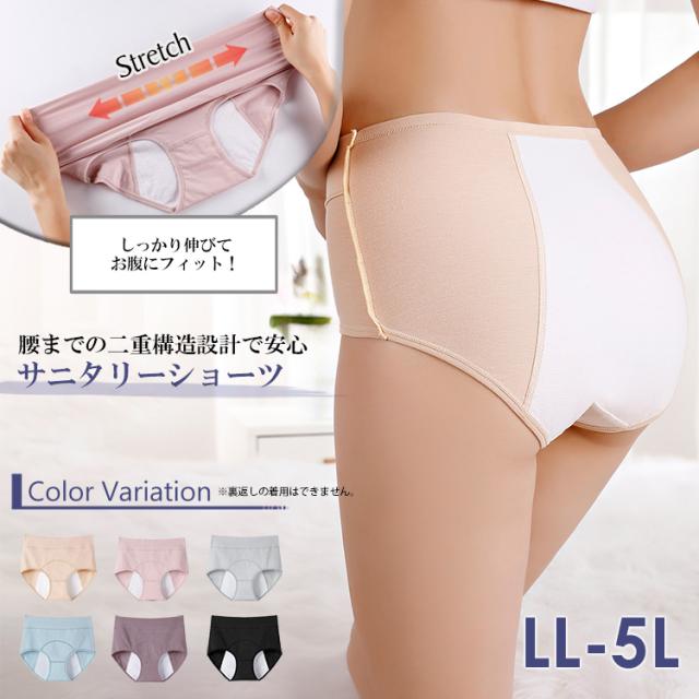 大きいサイズ レディース サニタリーショーツ 下着 メール便対応 生理用 無地 カラバリ豊富 インナー LL/3L/4L/5L ゆったりサイズ ぽっちゃり女子 プラスサイズ