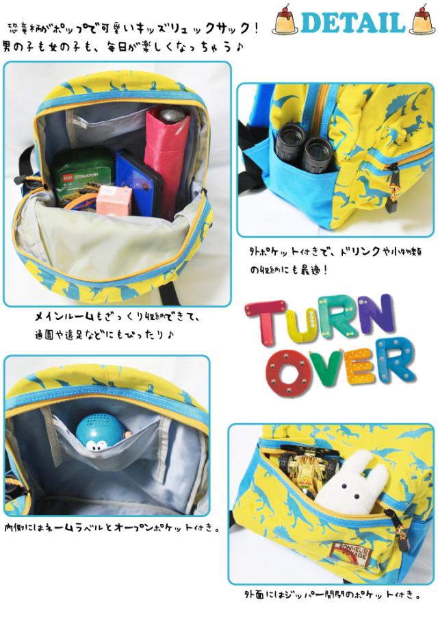【セール3%OFF】TURN OVER キッズ 恐竜 リュックサック ターンオーバー 男の子 子供用 通園 保育園 幼稚園 ダイナソー デイパック K-706