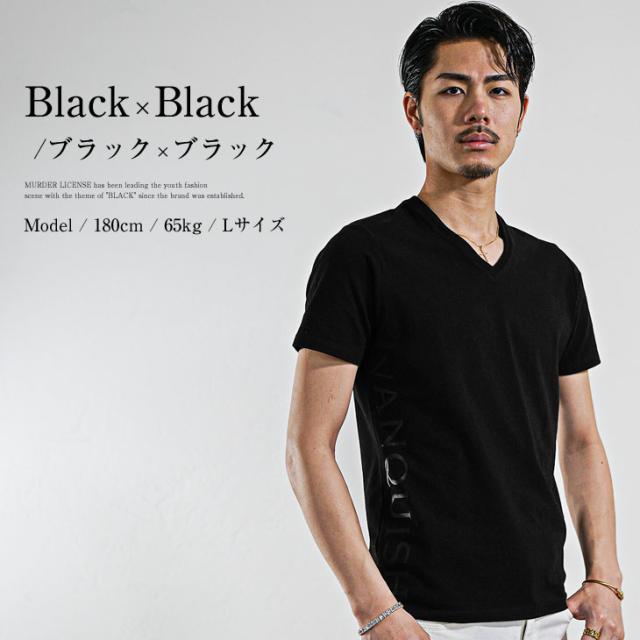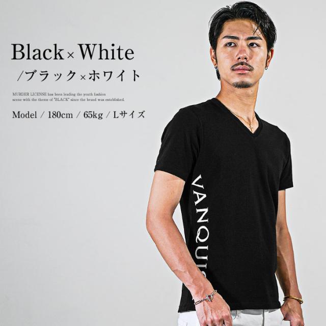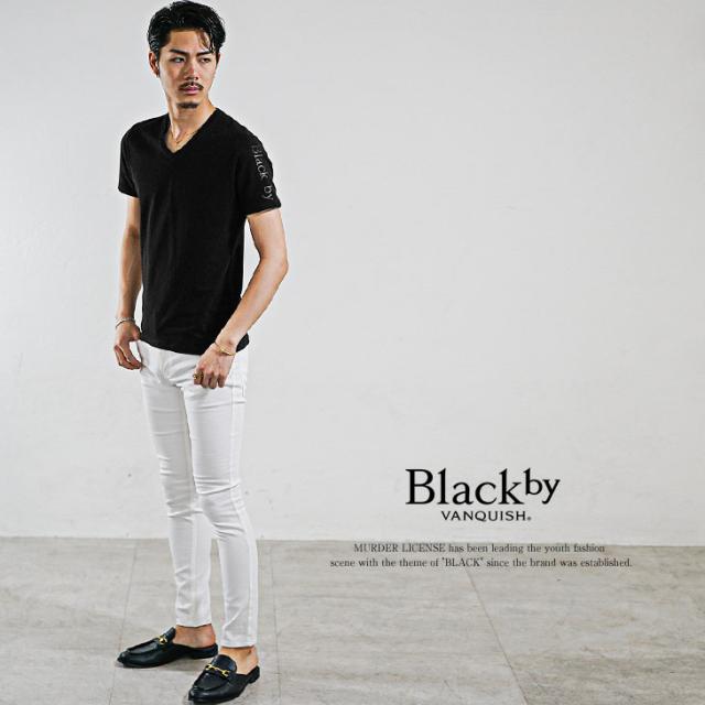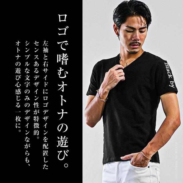 Vネック Tシャツ メンズ ブランド Tシャツ メンズ 半袖 黒Tシャツ メンズ カットソー 半袖 ロゴ Tシャツ スリム タイト メンズファッション リゾート お兄系 オラオラ系 ちょいワル Black by VANQUISH ブラックバイヴァンキッシュ 夏服 夏 夏新作 新作 夏服 夏 夏新作
