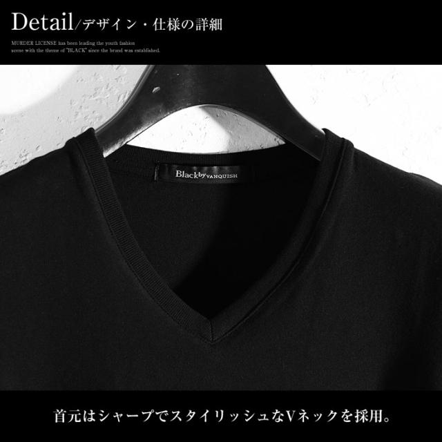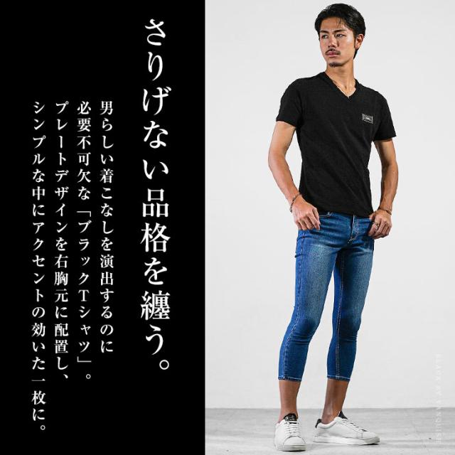 Vネック Tシャツ メンズ ブランド Tシャツ メンズ 半袖 黒Tシャツ メンズ カットソー 半袖 ロゴ Tシャツ プレート スリム タイト 細身 メンズファッション ちょいワル お兄系 オラオラ系 Black by VANQUISH ブラックバイヴァンキッシュ 夏服 夏 夏新作 新作 夏服 夏 夏新作