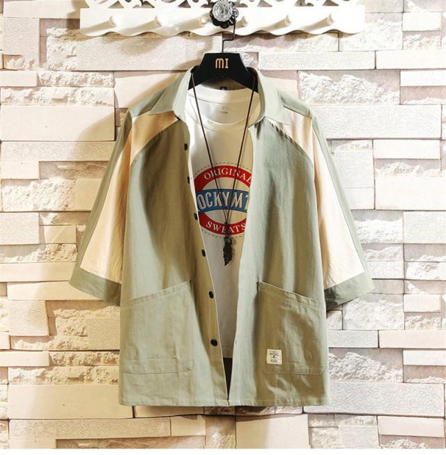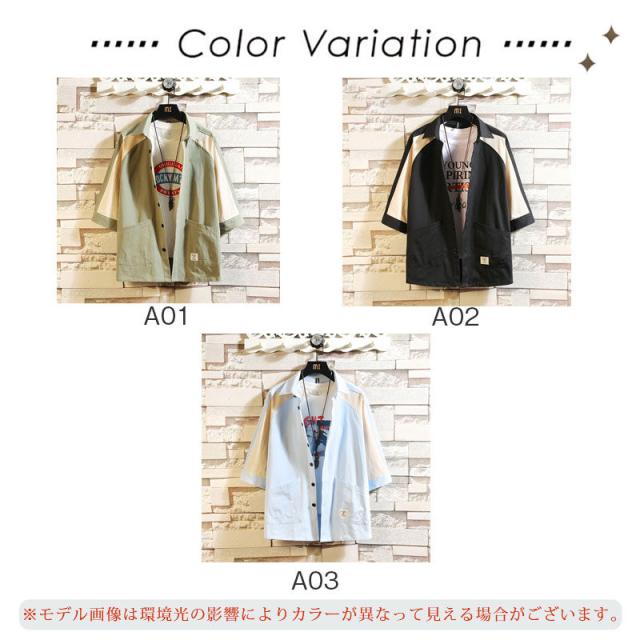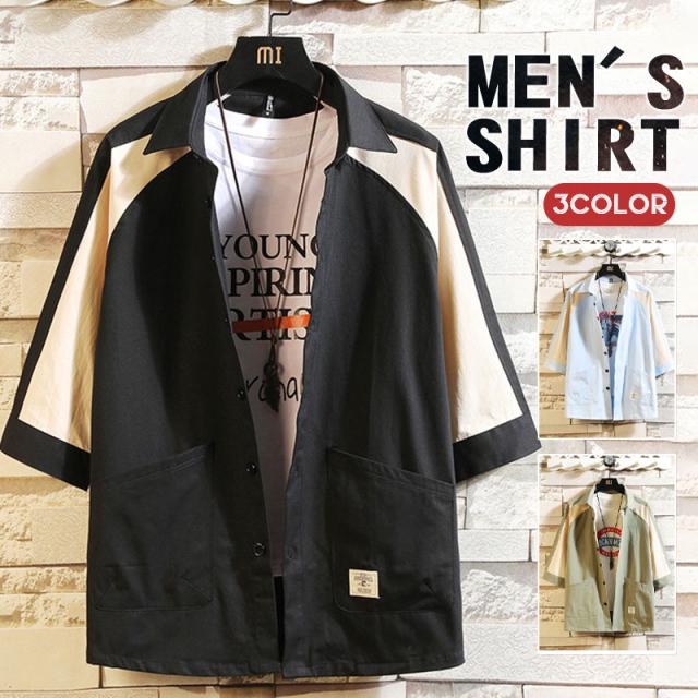 七分袖シャツ シャツ メンズ 半袖シャツ カジュアル ポケット シンプル 無地 ビジネス ミリタリーシャツ 羽織 開襟シャツ 夏服