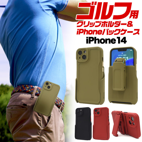 スマホケース iPhone14用 クリップホルダー付き バックカバー ゴルフ用品 アクセサリー ズボン ベルトにつけて 簡単取出し iPhoneケース シンプル 便利 携帯ケース 背面保護カバー スマホカバー スマートフォンケース カジュアル バックカバー SoftBank au docomo