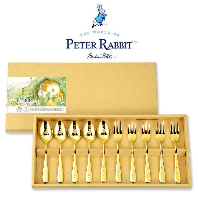 ピーターラビットの皿中レーザーカトラリー「金仕上ティースプーン・ケーキフォーク10本セット」 (食事 ディナー)